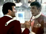 "Captain" Saavik, a Vulcan lieutenant in Starfleet, manages to lose to the Kobayashi Maru simulator's preprogrammed no-win situation, like every other cadet ever to take the test (with a single exception). Spock, now Captain of the Enterprise, returns to the ship to prepare for Kirk's upcoming pre launch inspection after dismissing the students from the simulator exercise. Kirk returns home and is visited by Dr. McCoy, who, after presenting him with a birthday present, tells Kirk that his abilities are wasted on a desk job and that he should resume his command of a starship.