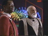 Kirk just as he is beamed aboard. The Bounty lifts off and reaches