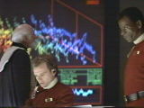 Uhura and Chekov gather the necessary energy to ready the Bounty for its next time warp, but they are detected on the carrier. Chekov gives Uhura the collection device and has her beamed back to the Bounty, while he is captured and briefly interrogated. Chekov escapes again, but is seriously wounded and taken to a hospital.