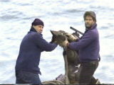 and Kirk releases the whales into the ocean. George and Gracie