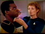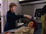 Dr. Katherine Pulaski; Chief medical officer aboard the U.S. S. Enterprise-D during the year 2365. "The Child". While aboard the Enterprise-D, Pulaski nearly died of a disease closely resembling old age, after she was exposed to genetically engineered human children at the Darwin Genetic Research Station on planet Gagarin IV. Pulaski recovered from the disease, thanks to a transporter-based technique, despite the fact that she harbored a phobia about transporter use. "Unnatural Selection". Pulaski cared for Kyle Riker after he was nearly killed in a Tholian attack in 2353. The two fell in love, and Pulaski would later recall that she would have married him 'in a cold minute' given the opportunity, but that Riker had "other priorities." Following her involvement with Riker, Pulaski married three times. As of 2365, she noted that she remained good friends with all three men. Counselor Troi commented once that Pulaski's greatest medical skill was her empathy with her patients, evidenced by the use of 'PCS-Pulaski's Chicken Soup' in treating the flu virus. "The Icarus Factor".